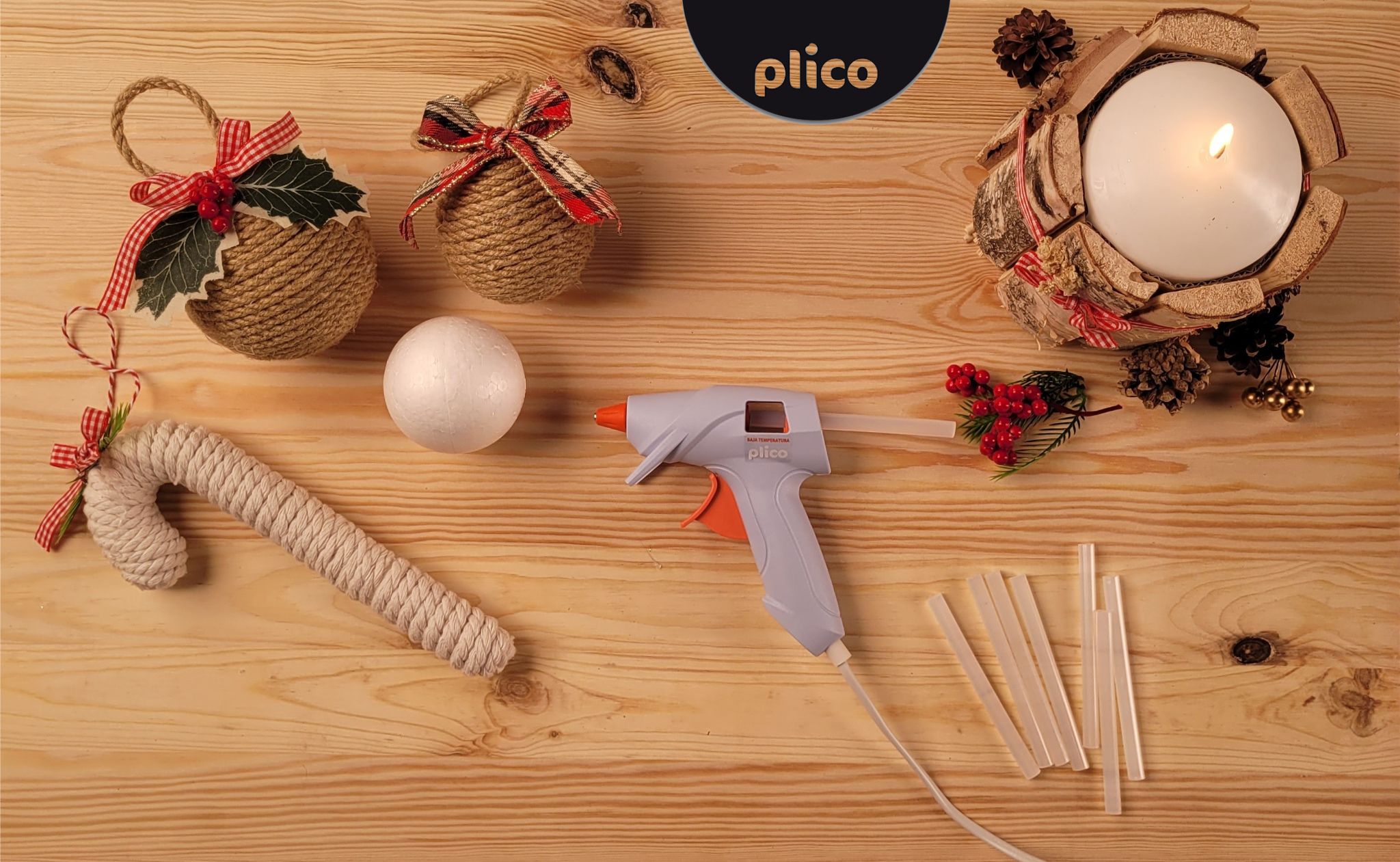 Bolas de Navidad de porexpan y cuerda rústica 🎅
