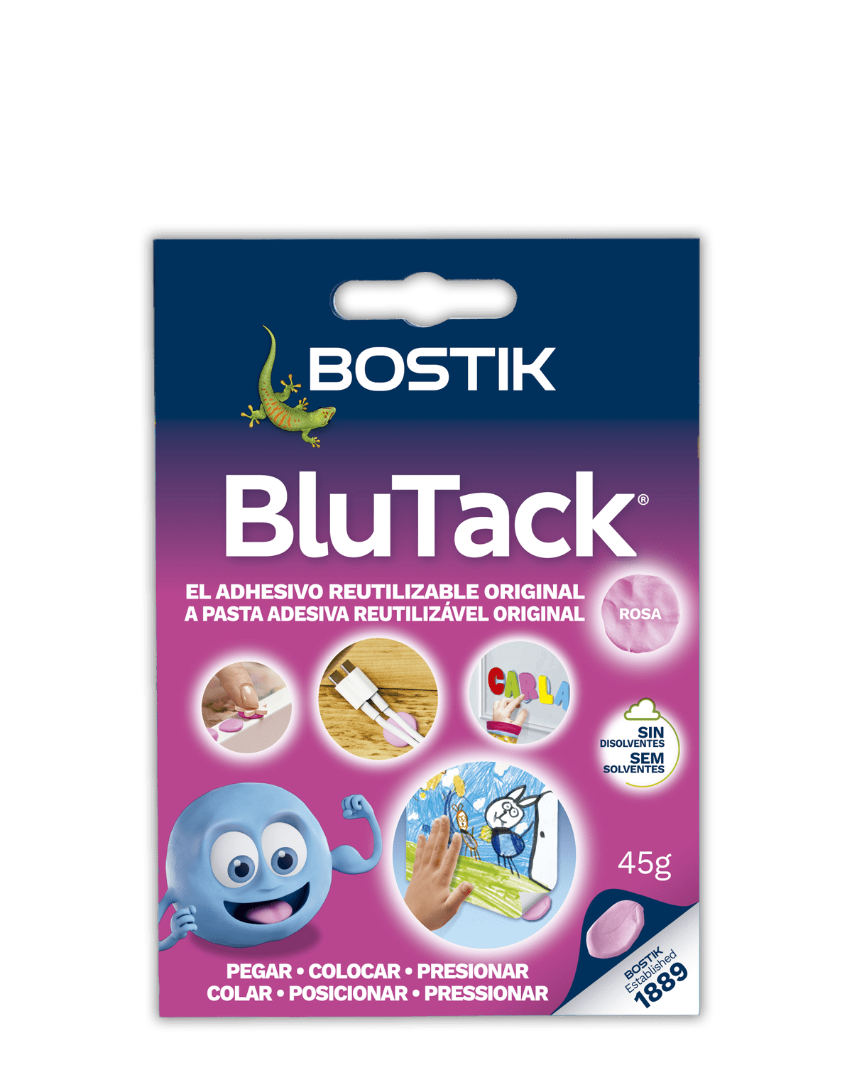 Masilla adhesiva moldeable y reutilizable de color rosa recomendada para la fijación de todo tipo de objetos.