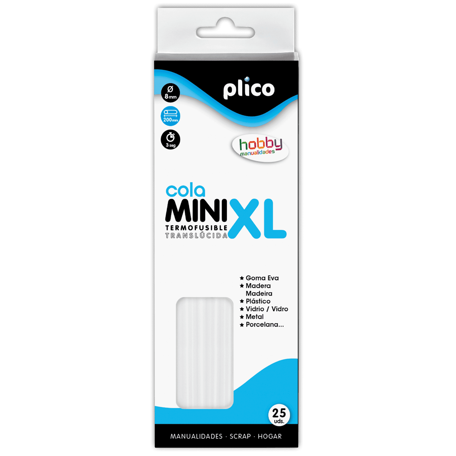 Adesivo termofusível “extralongo”, de 200 mm de comprimento e Ø 8 mm, para um trabalho mais intensivo e com menos recargas. Ideal para todo o tipo de artesanato e bricolagem, cola madeira, plásticos rígidos, cerâmica, vidro, metal, porcelana,… Também pode utilizar-se como adesivo de preenchimento.