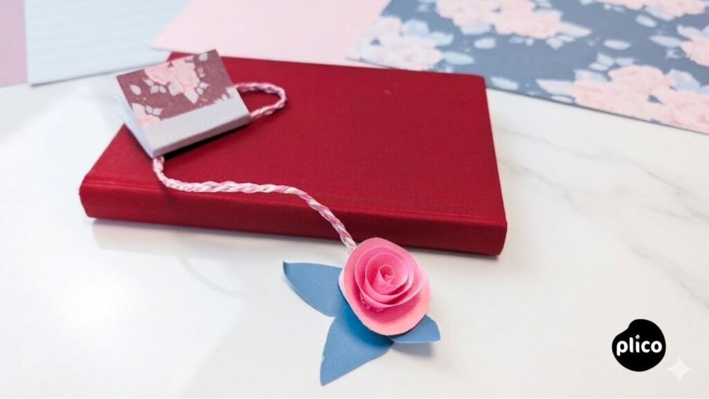 🌹📚 Punto de libro con mini rosa | Manualidad scrap fácil